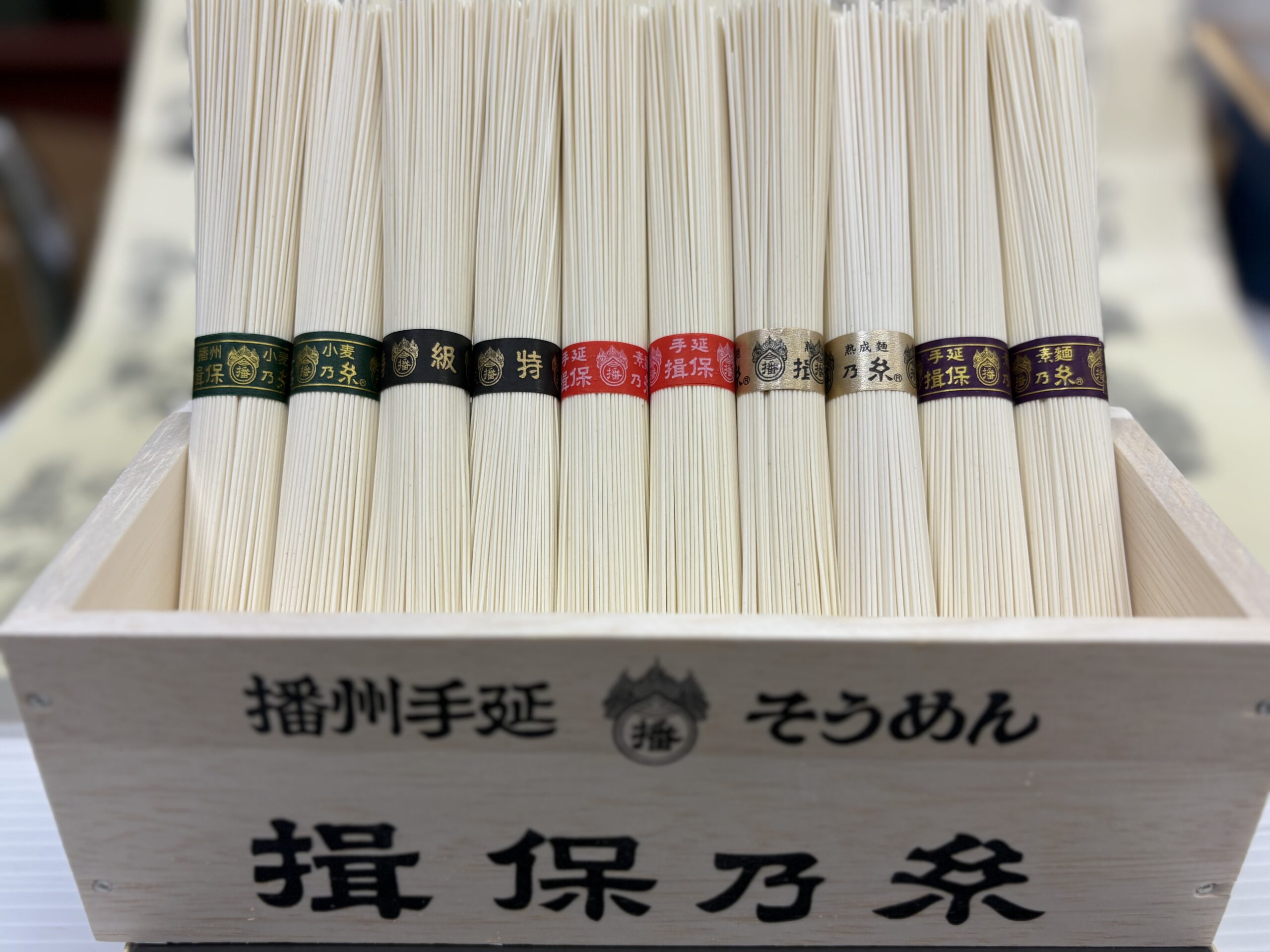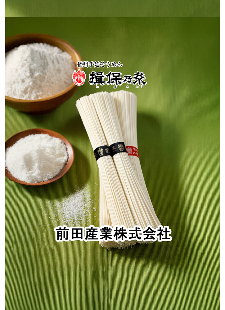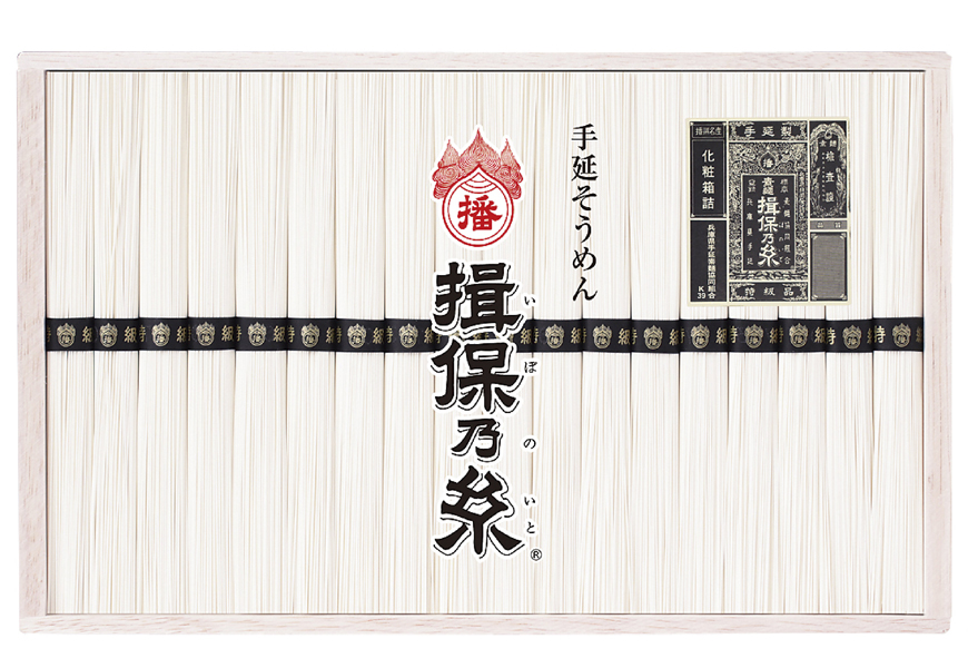 「揖保乃糸」は、兵庫県播州地域で約380軒の組合員が製造する伝統の手延そうめんです。その歴史は600年以上前の室町時代に遡り、清らかな揖保川の水、良質な小麦や塩、安定した気候に恵まれ育まれてきました。昭和8年に「兵庫県手延素麺協同組合」が設立され、商標登録と徹底した品質管理により全国的なブランドへと発展。現在も伝統製法と厳格な検査を守りつつ、現代の技術を取り入れ、安心・安全なそうめんを世界へ届けています。